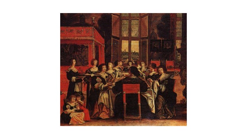 The kind of gathering called “salon” first appeared in Italy in the 16th century, but developed in France throughout the 17th and 18th centuries. Alongside fostering political and social alliances and exchanges, the purpose of such gatherings of “equal minds” adhered to Horatio’s definition of the purpose of poetry: aut delectare aut podesse (either to please or to educate). The term “salon” appeared in France for the first time in 1664. Before that, in the period of our story, for instance, they were named after the room in which they were taking place (e.g. cabinet, réduit, ruelle, and alcôve).