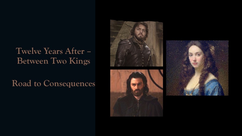 For a moment, every man, woman and child in the yard stares at the empty path where an armed group of men had once been, the steady drum beat of horse’s hooves fading. Dead leaves and bits of straw swirl at their feet, driven by a cold morning wind, under a threatening dark sky. Athos appears next to her, ‘now we begin,’ he says.