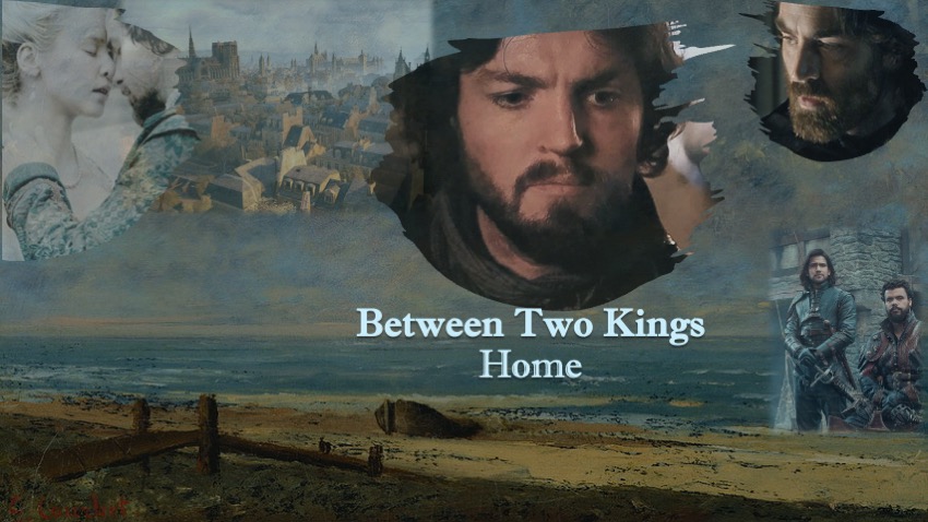 D’ Artagnan wraps his arms around Athos’ and Aramis’ shoulders. “Aramis was right. Just as you are right. I was wrong on both counts, and now, my dear Porthos, I fear you are wrong as well. You see, even though I find myself as far from home as I could possibly be– you too Porthos, for neither of us hails from these parts, which are too noble for a farmer’s son, like myself—we are in many respects at home. Think about it, Porthos. Everyone who matters to us is here, and safe.” Porthos nods. “As for you two,” d’ Artagnan mocks a stern tone turning to Aramis and Athos, “you two are more alike than you would like us to believe!”