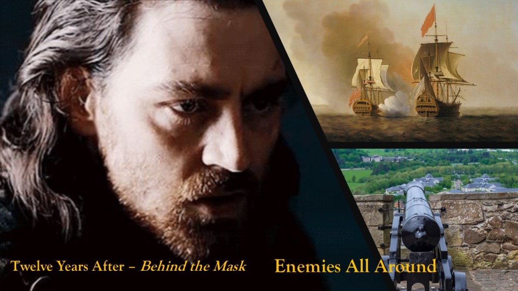 “Fou is preparing messages. The horses will be at the cove.” Benoit takes in Lucien’s somber expression. Lucien has been on the deck since they weighed anchor, has barely slept or eaten. Benoit first tried reason, “there is a fight ahead Lucien, you will need your strength.” But to no avail. Now he tries to reassure Lucien. “You prepared well. Martin and your men know what to do. Porthos and d’ Artagnan, Gasparo have already taken measures by now.” He pauses because he knows what truly troubles Lucien.
