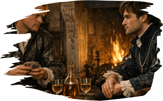 “Well!” Rochefort laughs as he looks at the cards in his hand. “I don’t. Relying on luck and giving fortune the credit is a waste. A pastime for indolent minds.” He sets the deck of cards back to its place on the side table. “I never liked games of chance, even though in my youth I was prone to many excesses, gambling included. I had convinced myself that gambling was not entirely chance. That there was some calculation involved making it worth my time.” He levels a playful, boastful look. “I was good at it though, and I liked winning. Unlike your father.”